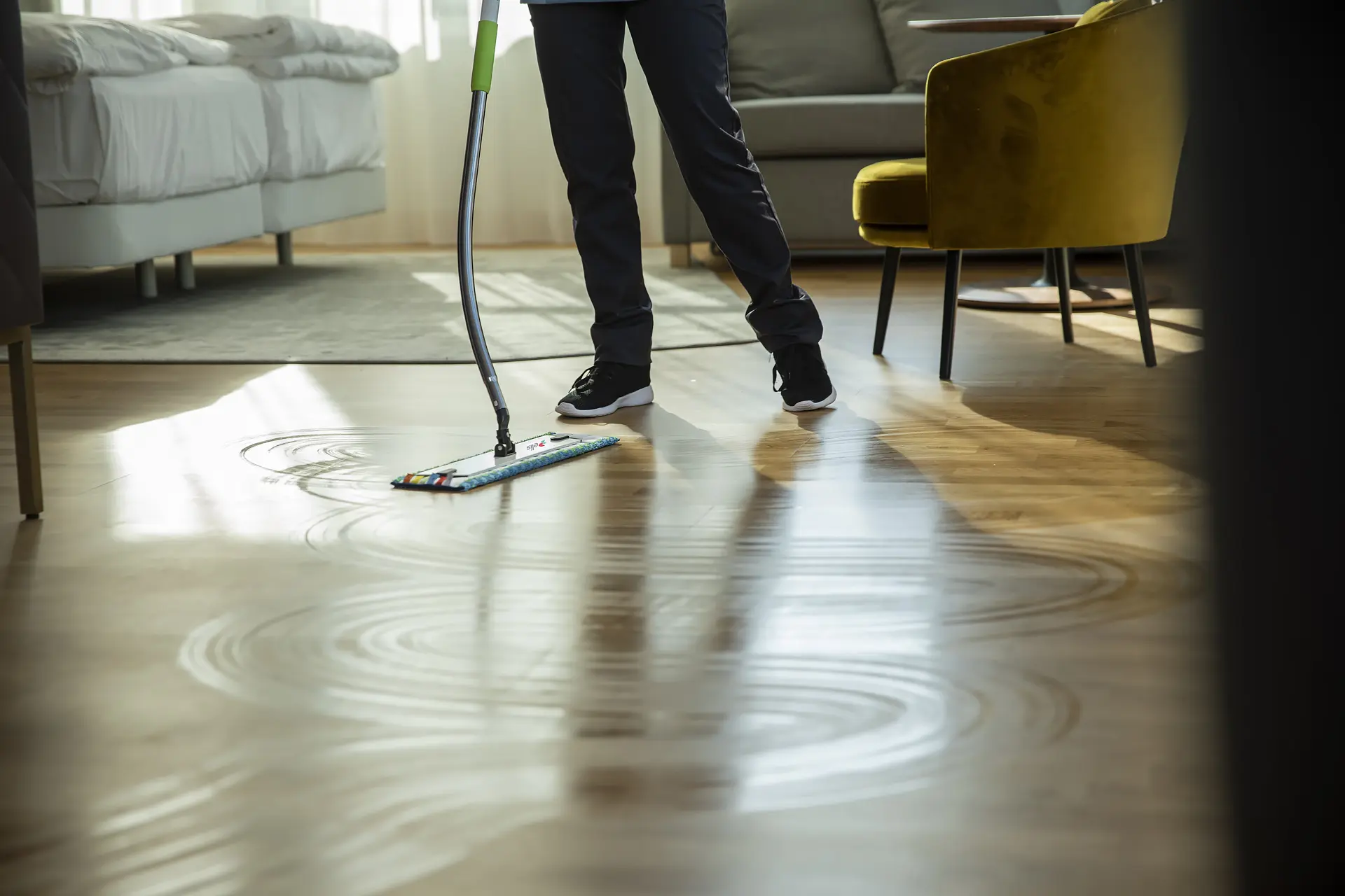 - Taaskasutatavaid moppe pestakse tööstuslikus pesumajas;
